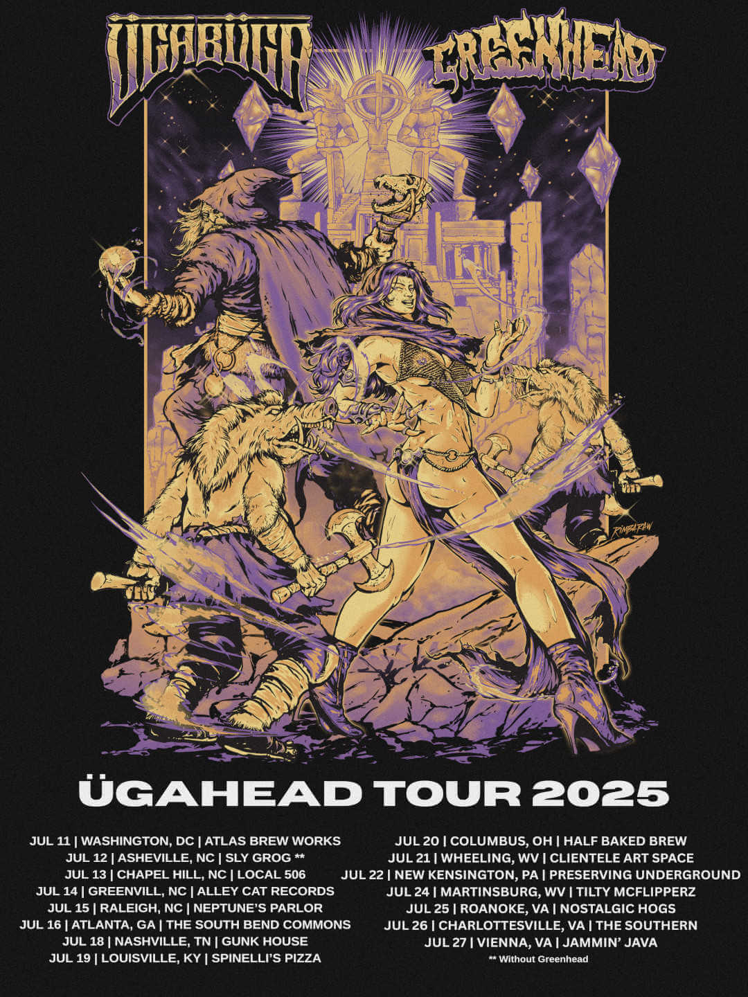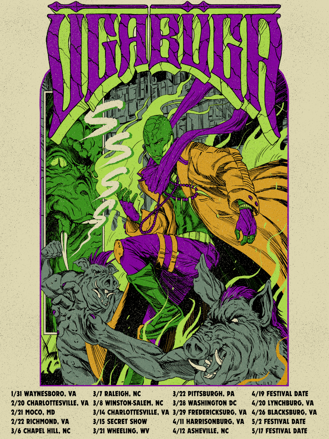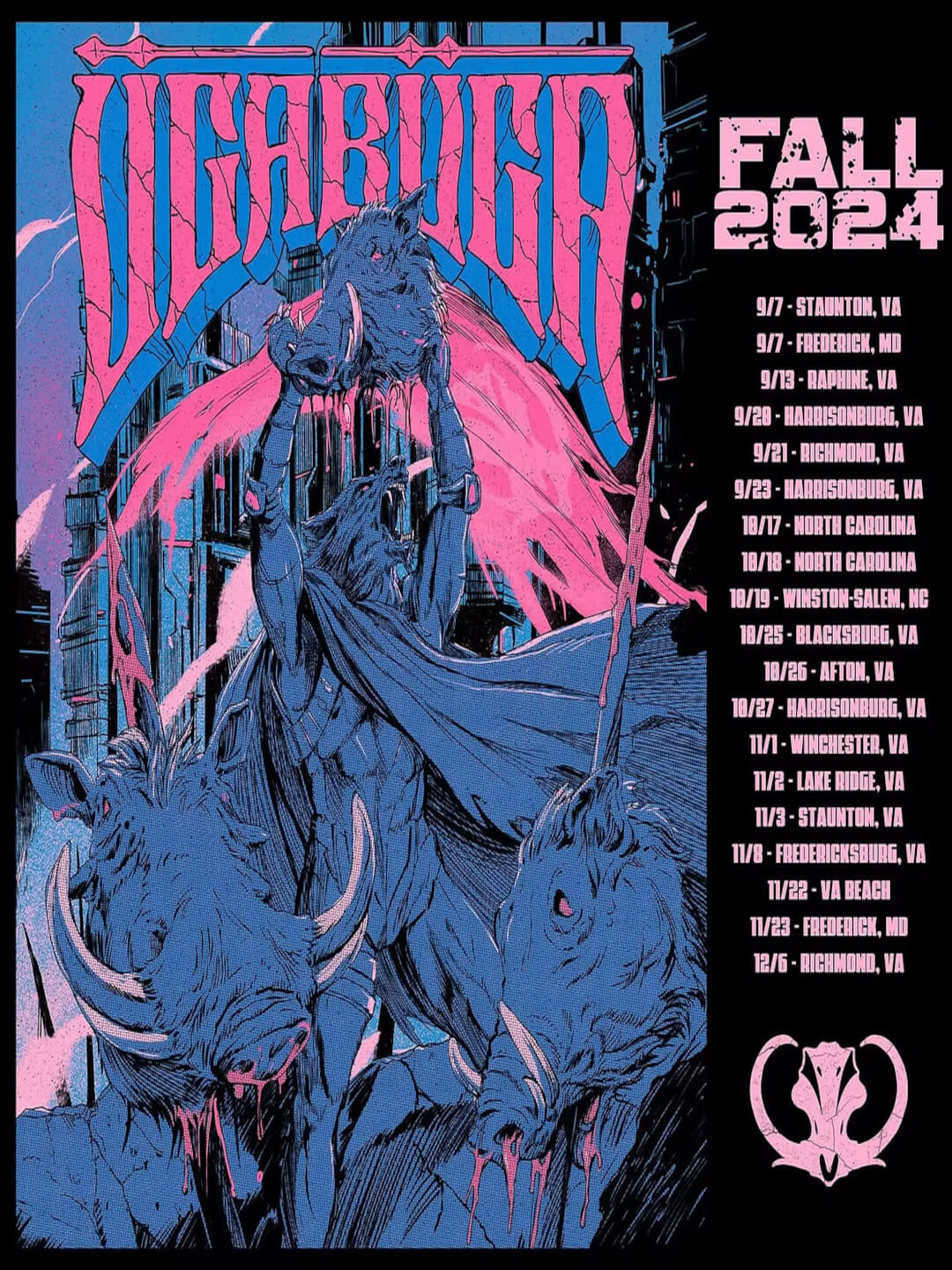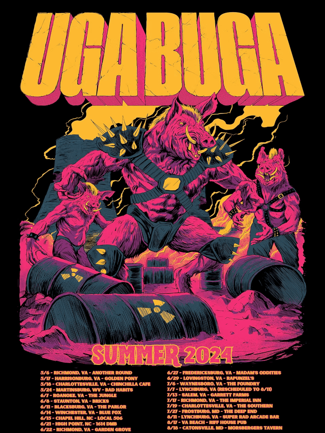 Hailing from Virginia, Üga Büga fuses influences like Mastodon, Soundgarden, High on Fire, and The Mars Volta into a genre-bending force of rock and heavy metal. Their forceful sound is matched by fantastical lyrics of post-apocalyptic hog men, sinister wizards, and dual-wielding warriors tearing through landscapes on motorcycles—evoking scenes similar to the worlds of TMNT, Dragon Ball, and other classic comics and cartoons. Riding high after their 2024 debut album, Year of the Hog, landed on the Doom Charts, ÜGA BÜGA is set to unleash their next chapter, Valley of the Wolf.