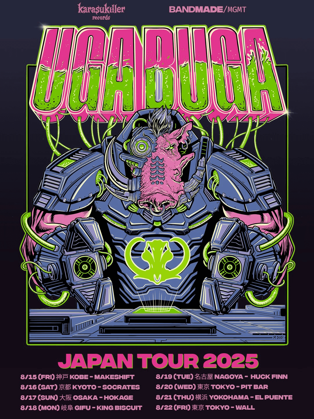 ÜGA BÜGA has built a reputation as a sonic outlier through relentless performances across the eastern US. Their high-energy shows have earned them opportunities to open for national touring acts like Nothing More, Darkest Hour, Castle Rat, King Buffalo, and many more, as well as festival plays such as Does It Doom's Seismic Summer Fest and Doomed and Stoned Fest. Fans and peers have tried to use countless labels to describe their sound, the consensus always comes down to two words: unique and heavy. Their growing presence has led to incredible opportunities—most recently, an international tour in Japan.
